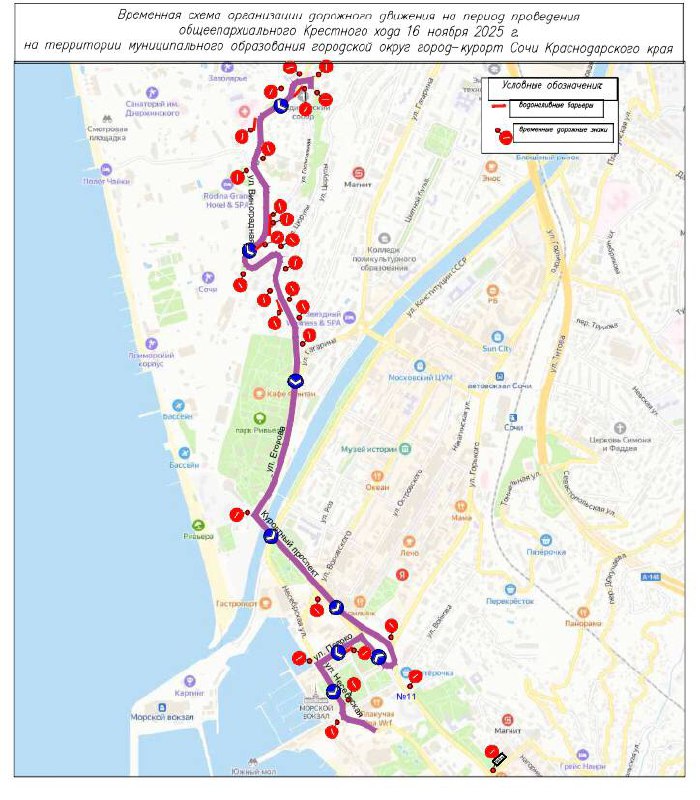 В Центральном районе Сочи изменят схему движения из-за проведения крестного хода. Религиозное мероприятие приурочено к дню Святого Михаила Архангела, который традиционно отмечают 16 ноября.