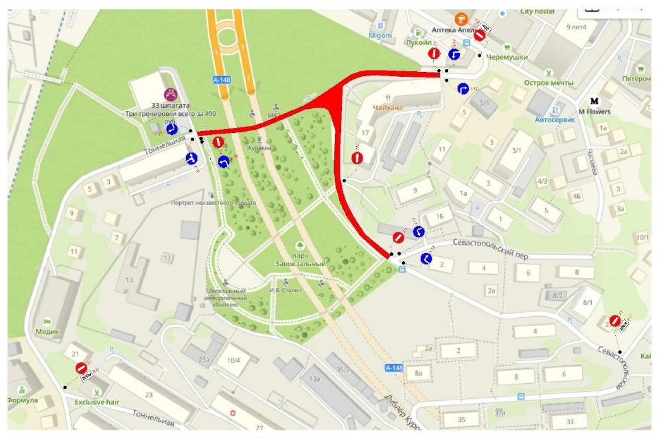 - пересечение улицы Севастопольской с улицей Тоннельной,