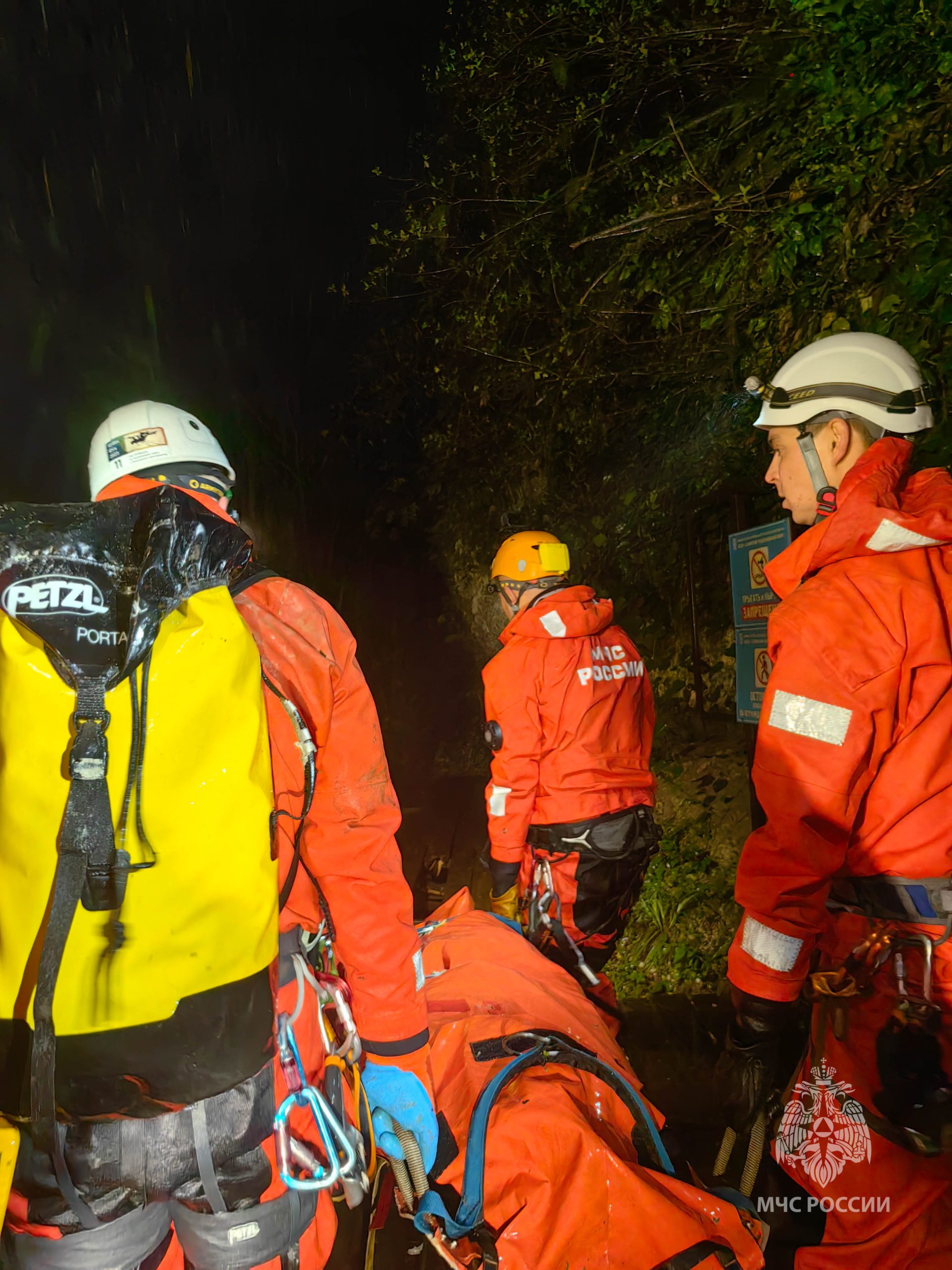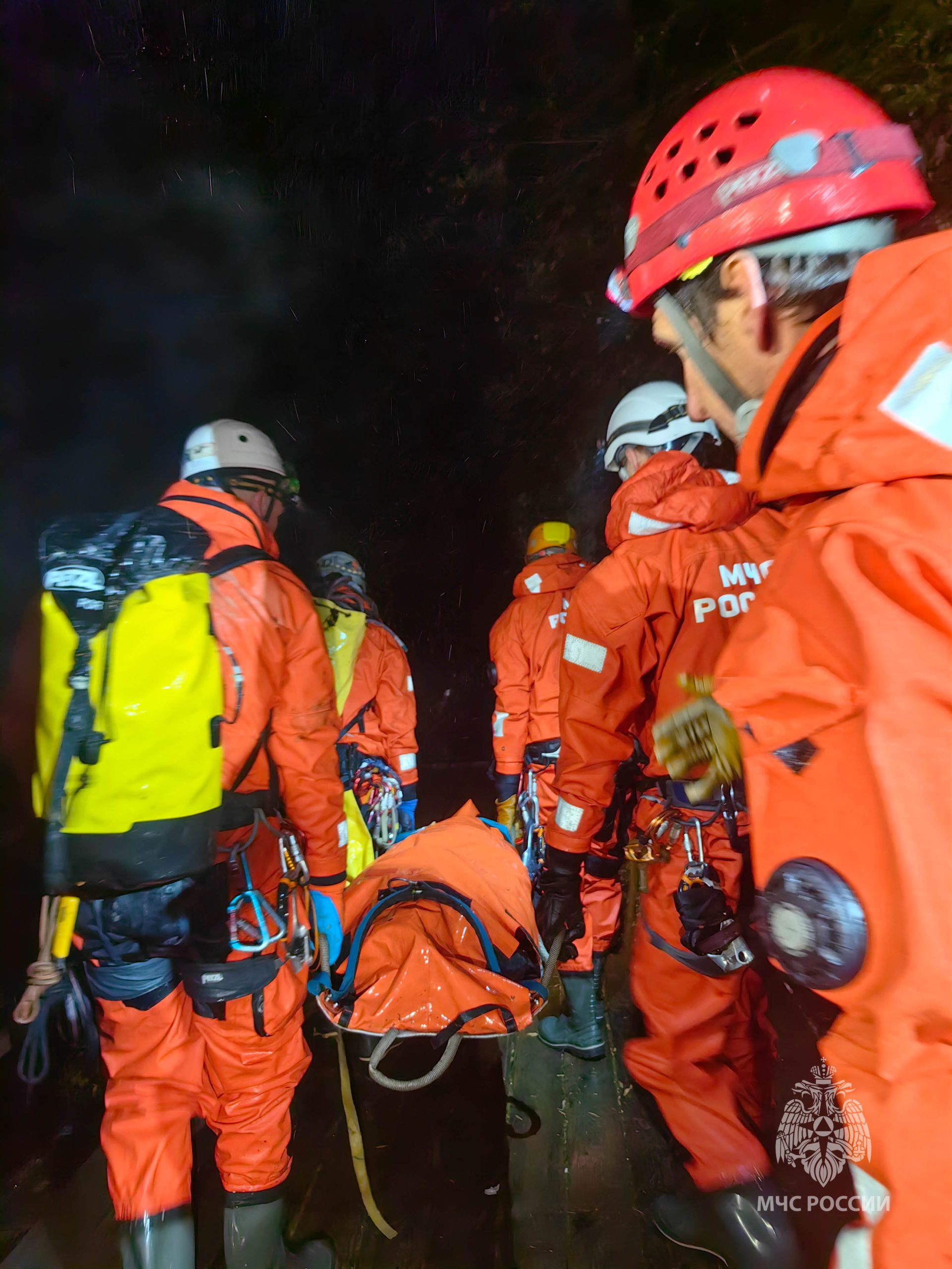 Далее спасатели транспортировали погибшую на носилках с использованием спелеологического оборудования через каньон в безопасную зону. После этого тело передали представителю следственных органов.