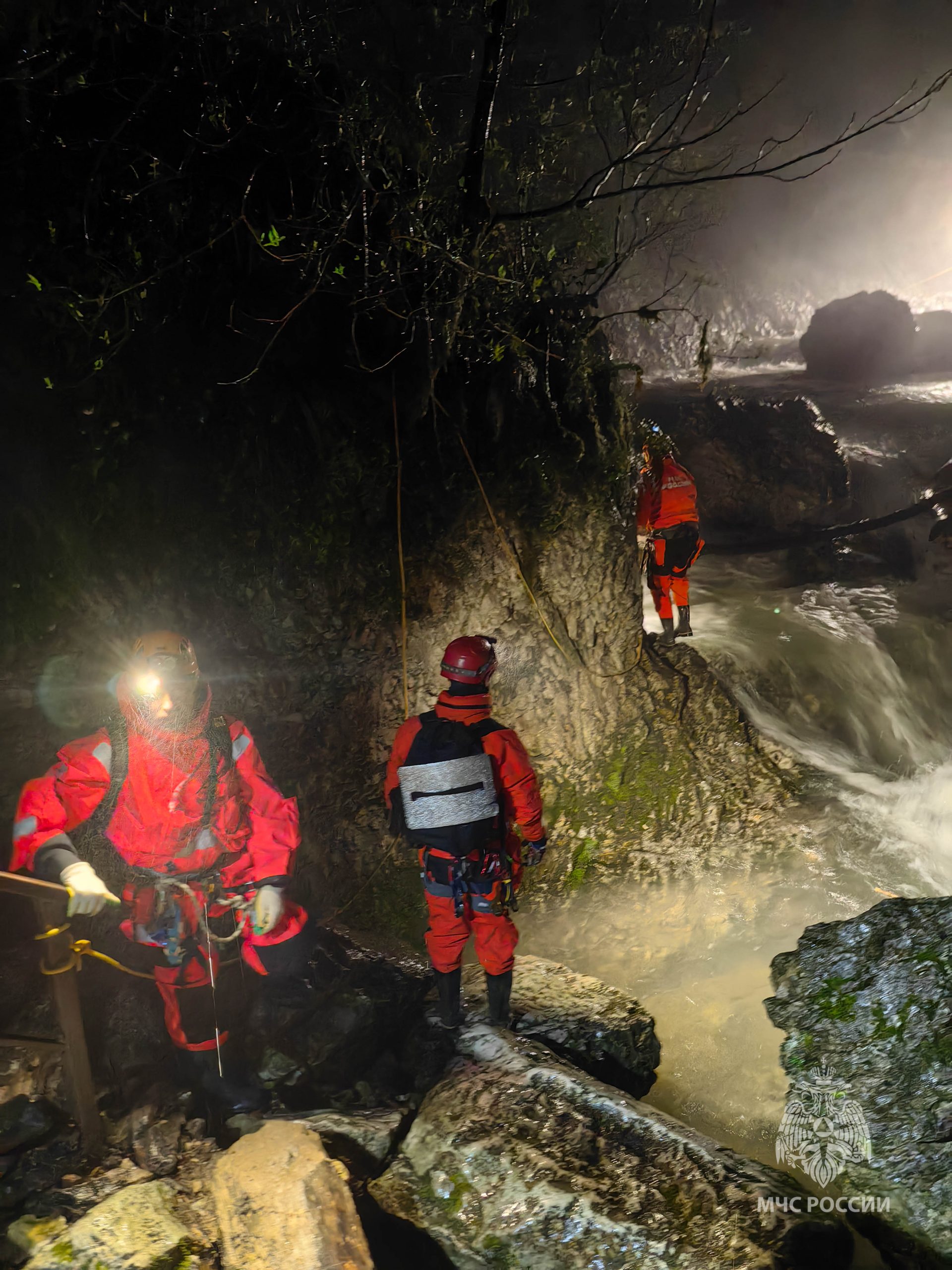 Операция проходила в сложных условиях. Для перемещения по обводненной пещере специалисты применили технику SRT — передвижение по одной веревке. На вертикальном участке высотой около 30 метров была организована дополнительная страховка. С помощью маятниковой системы тело переместили на скальную полку.