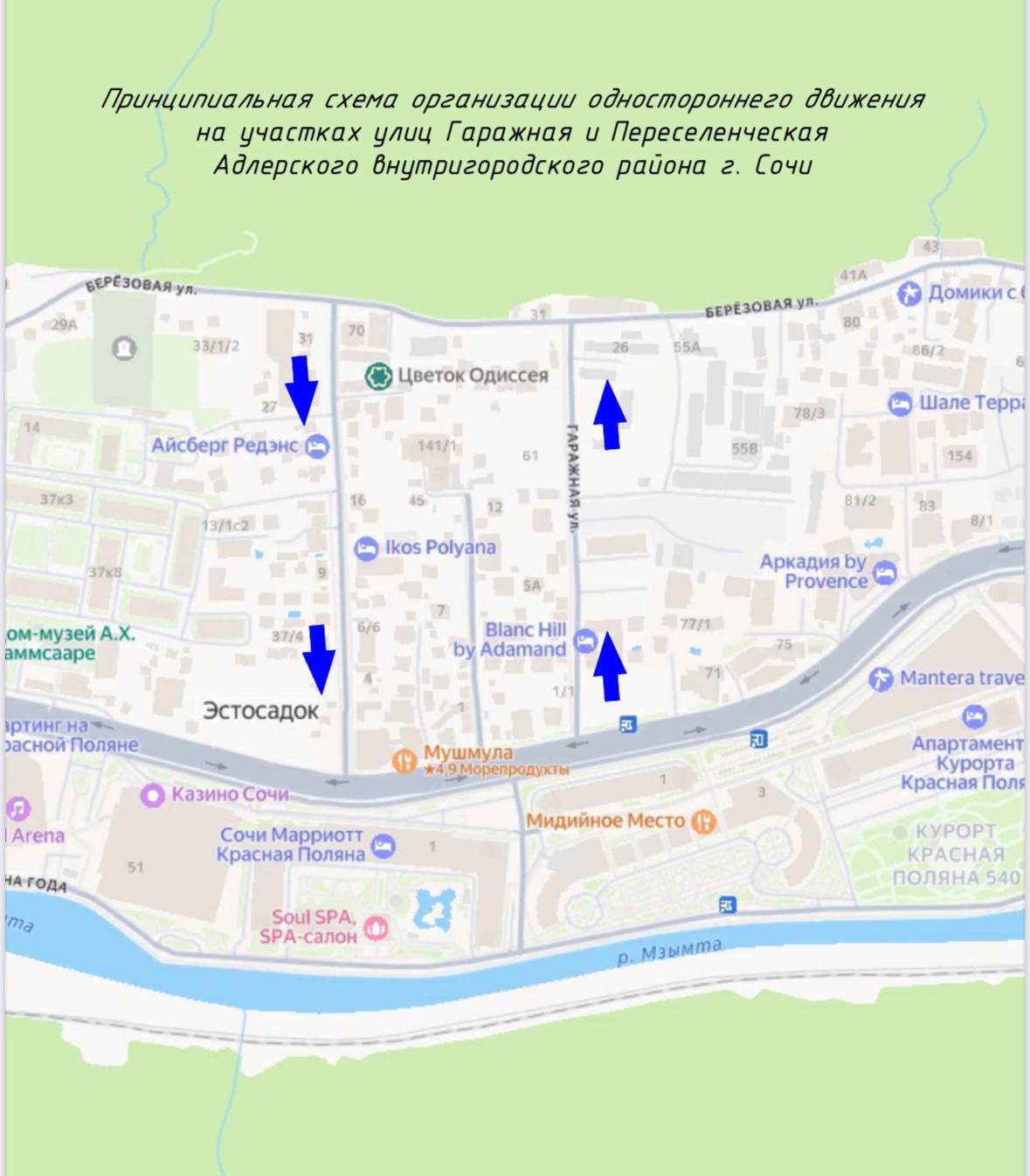 27 ноября в горном кластере Сочи меняется схема дорожного движения. В Адлерском районе на улицах Переселенческой и Гаражной введут одностороннее движение.