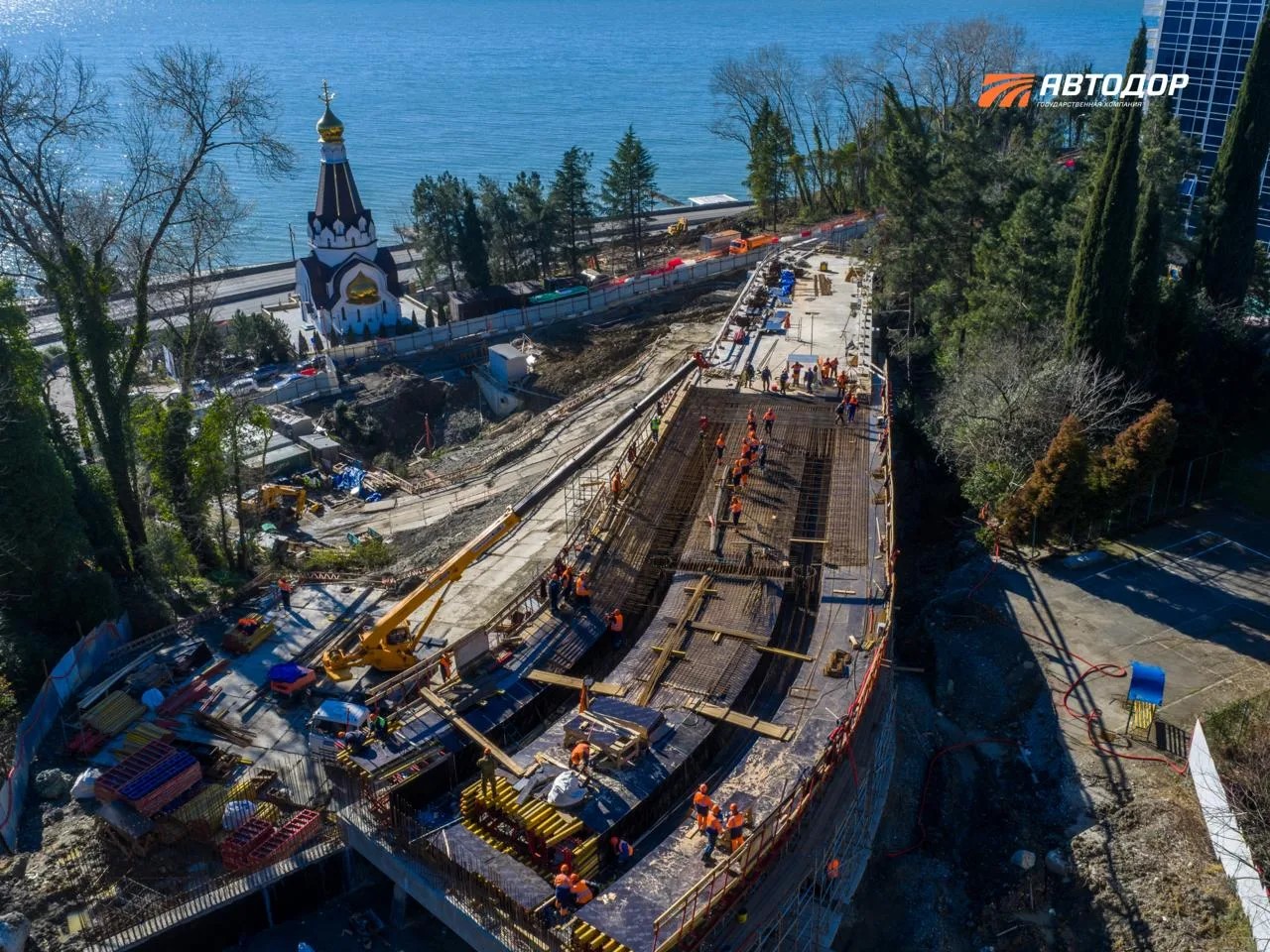 В 2026 году уже завершили бетонирование пролетных строений разворотной петли в селе Высокое. Также закончили новый подъезд к санаторию «Кудепста». Продолжается возведение эстакады от мостов до западного портала. Ее длина составляет 916 метров. Это самый сложный узел объекта. На восточном портале уже видны очертания будущих тоннелей.