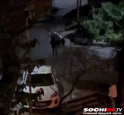 В Сочи жильцы дома в Адлерском районе сняли на видео инцидент с участием мужчины и женщины, которые в ночь на среду на улице громко выясняли отношения.