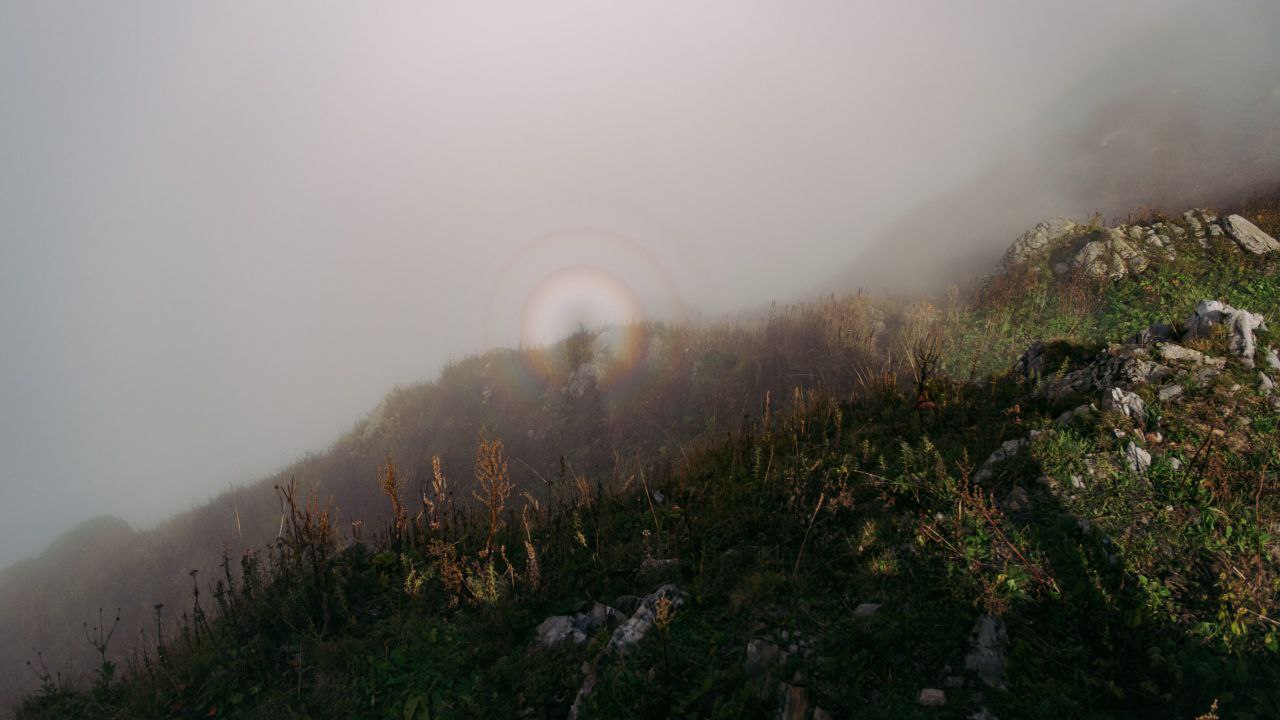 В горах Сочи снова наблюдали редкие атмосферные явления — «брокенский призрак» и «глорию». Об этом рассказали авторы телеграм-канала «Погода в Сочи». Фотографии явления удалось запечатлеть местному фотографу.