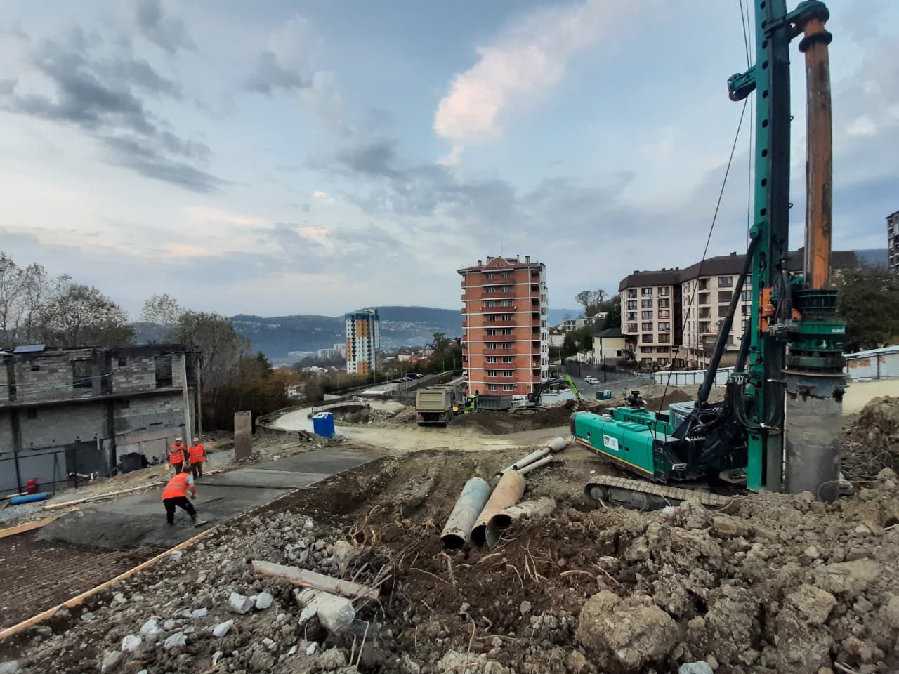 В Центральном районе Сочи на улице Вишневая полным ходом идут работы по строительству современного многоквартирного дома. Новостройка предназначена для жителей, которые будут переселены из непригодных для проживания домов.