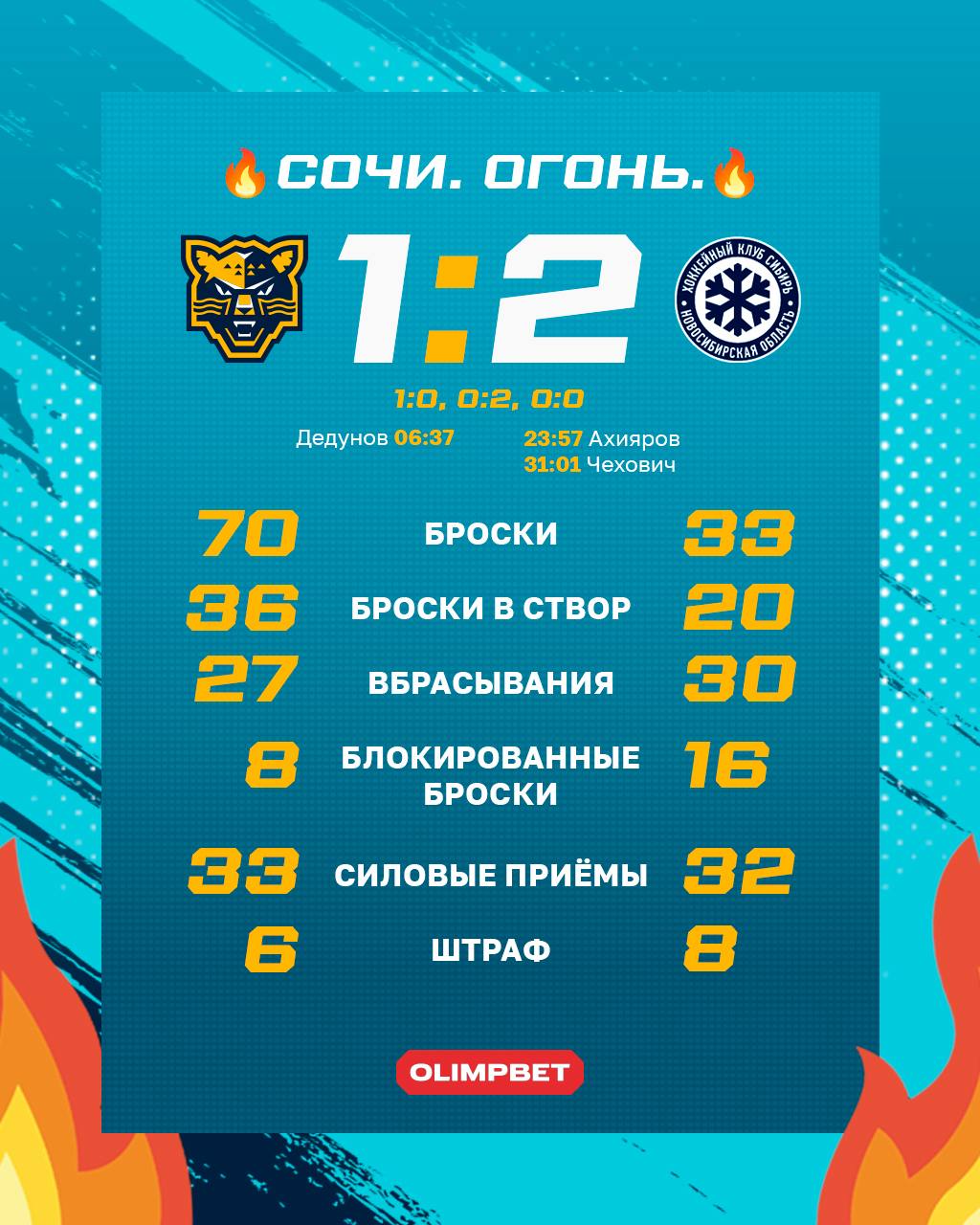 Вечером 22 ноября у сочинских «леопардов» состоялся домашний матч, в рамках которого их соперником стала команда из Новосибирской области. ХК «Сочи» сыграл против ХК «Сибири» в дворце спорта «Большой».