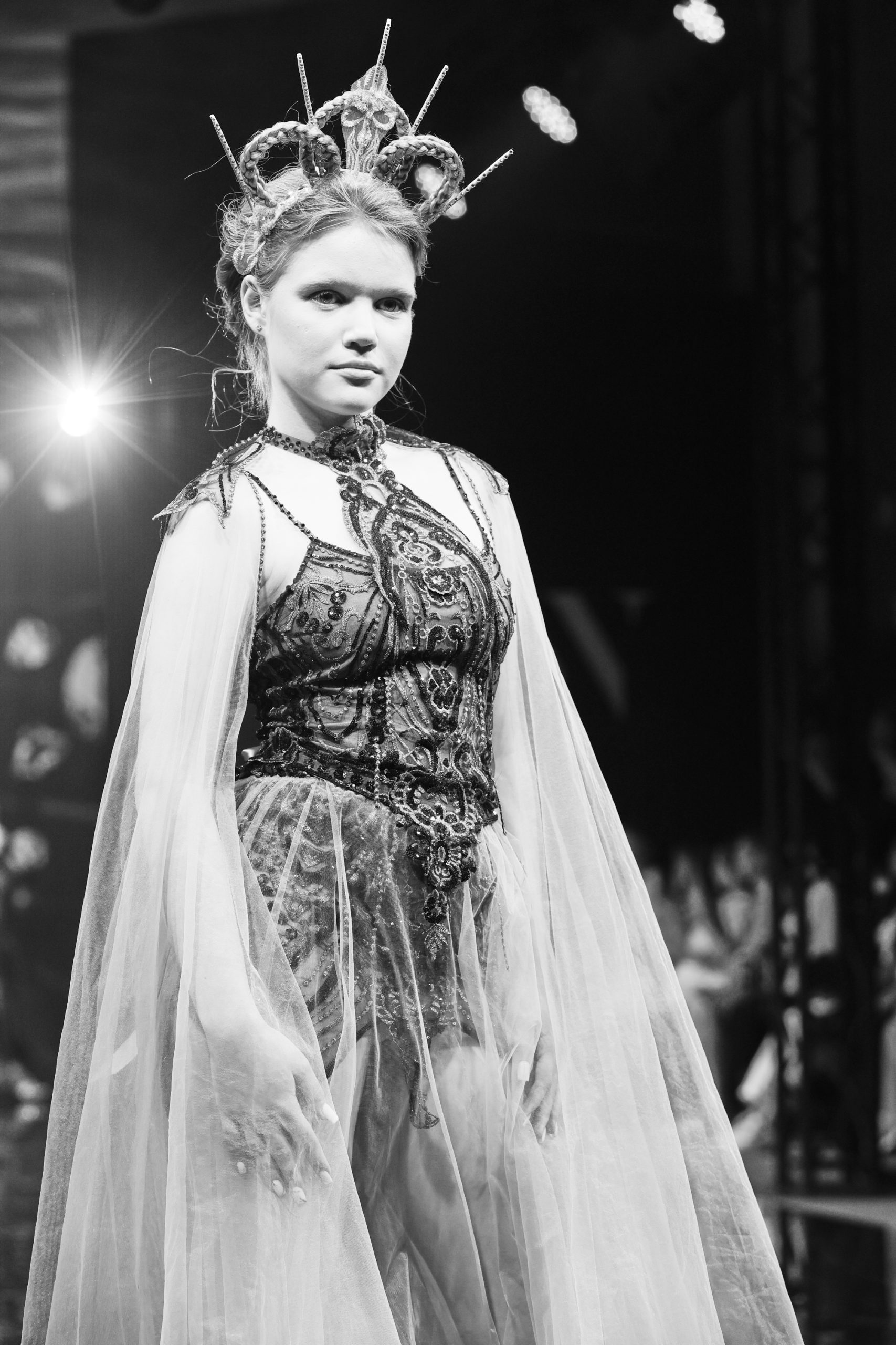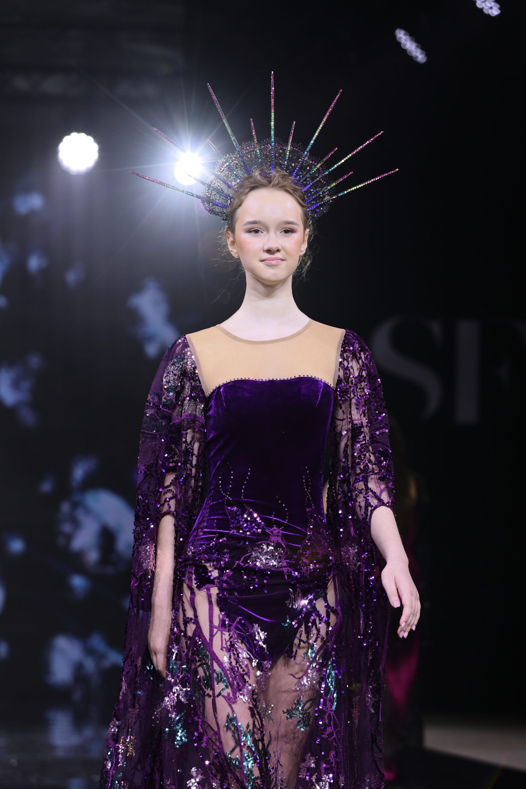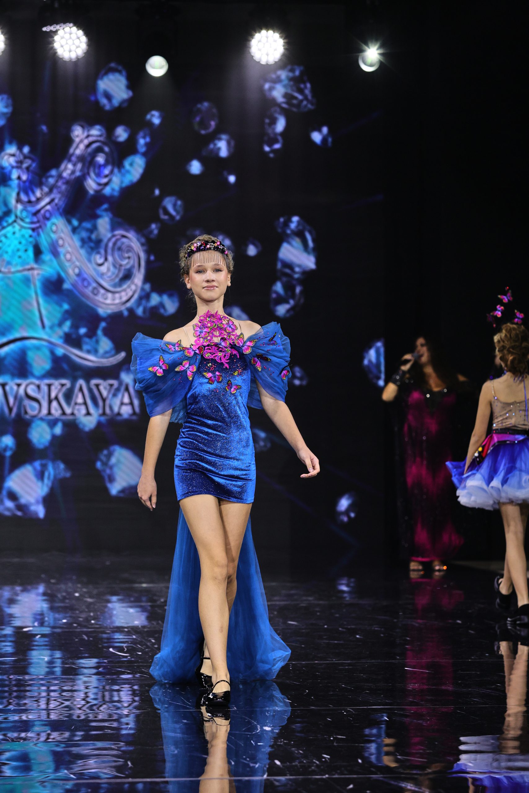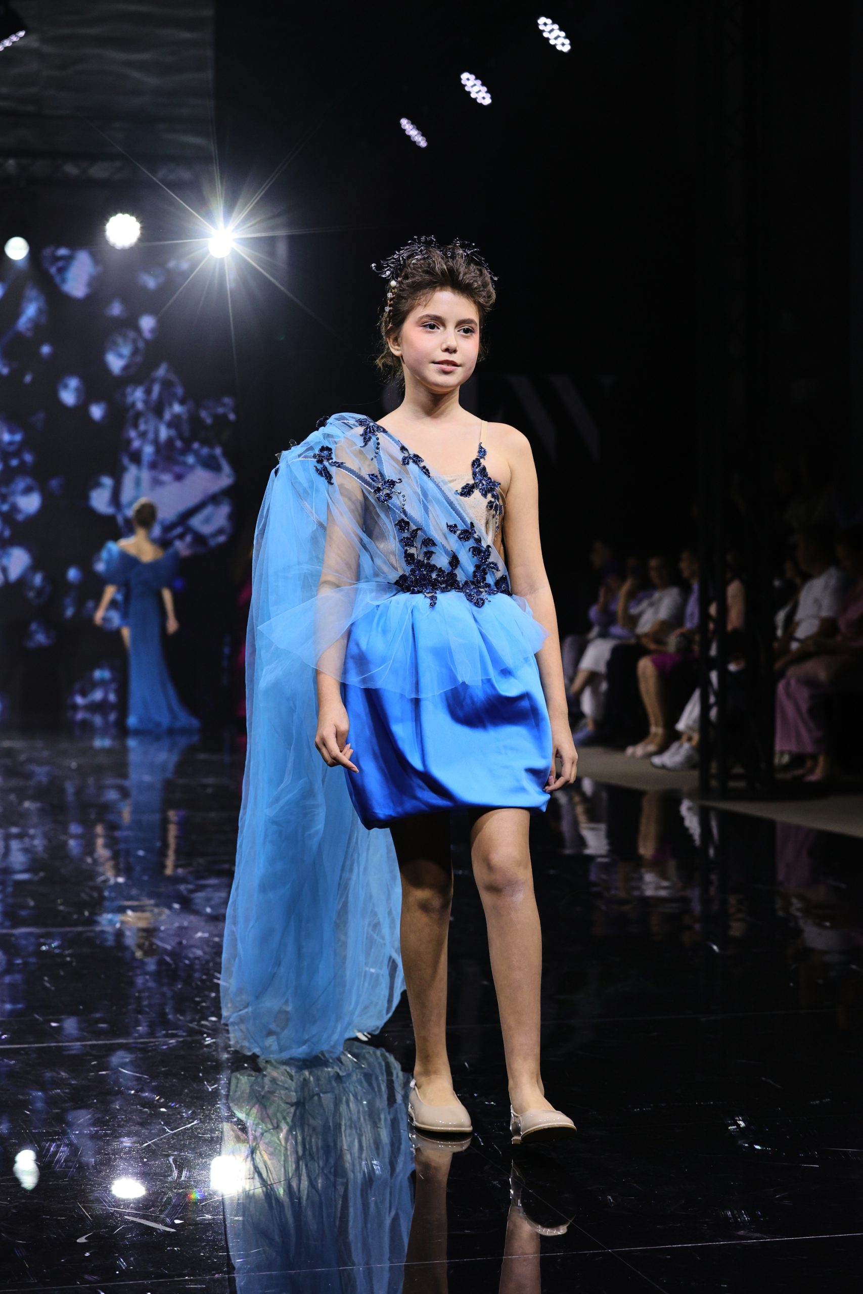Дизайнер создала вечерние платья для юных девочек, девушек и женщин, в которых явно нельзя остаться незамеченными. Цветовая палитра включает доминирующий зеленый — от глубоких до ярких оттенков, символизирующий гармонию и жизнь, а также малиновый в качестве яркого контраста, добавляющего образам выразительность и драматизм.