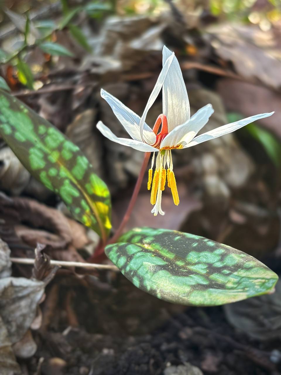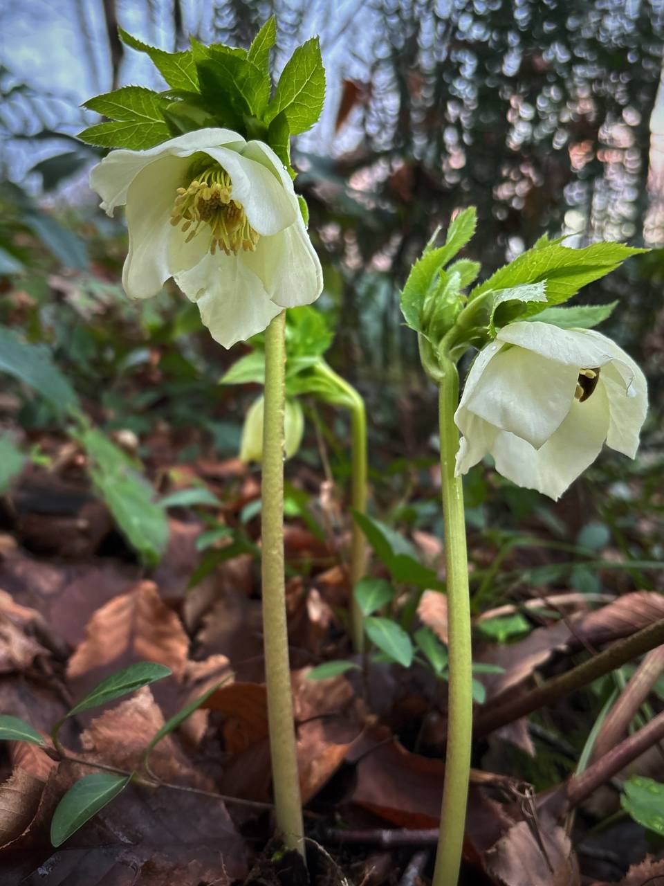 Среди прошлогодней листвы пробиваются кудрявые соцветия морозника, который местные жители ласково называют «зимовником», а на влажных склонах распускается редкий кандык кавказский. Склоны укрывает густая зелень горянки и молочая, который добавляет в палитру салатовые тона. Особое внимание привлекают нежные подснежники Воронова, чьи белые колокольчики символизируют чистоту обновления природы. Эстафету цветения также приняли трахистемон, душистая зубянка и грузинский окопник, наполняя воздух тонким ароматом весны.