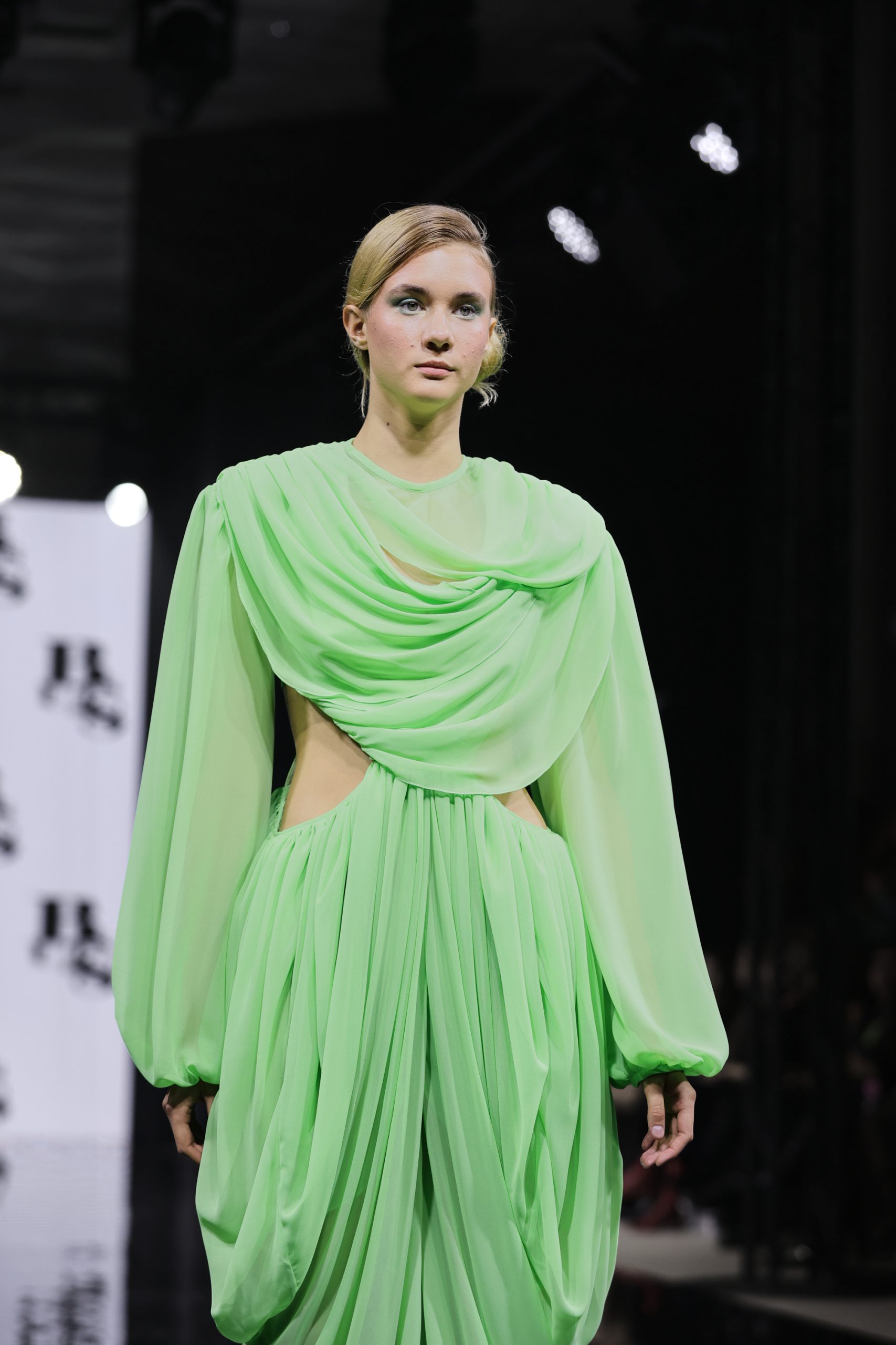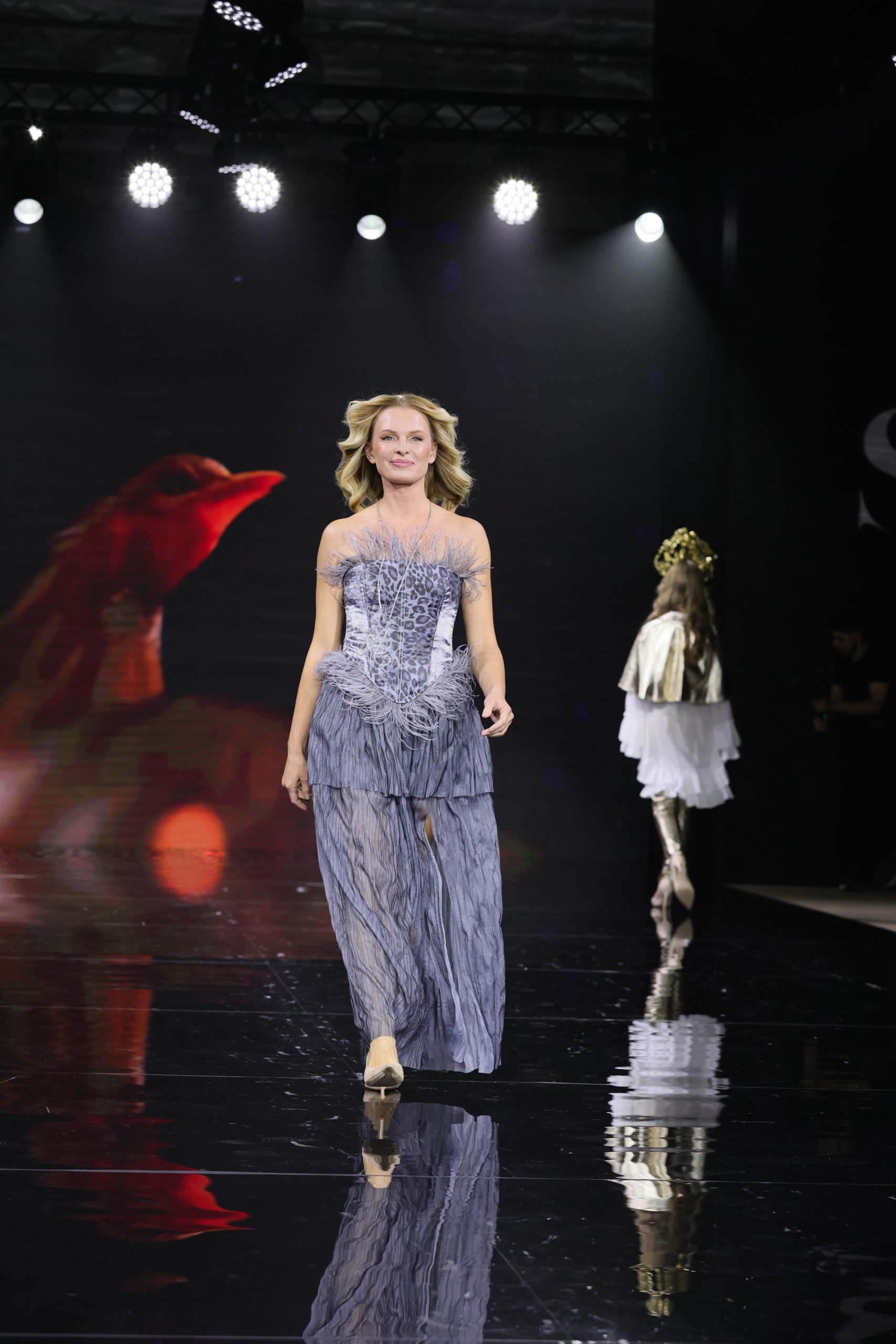 Бренд KIBOVSKAYA создает не просто вечерние наряды, а волшебство, которое оставляет незабываемое впечатление и становится особенной частью самых важных моментов в жизни своих разновозрастных клиенток — будь то светский прием, торжественное мероприятие или праздничный вечер дома. Завершился показ под живое выступление певицы Анны Скляр. Лицо показа: Левицкая Елизавета.