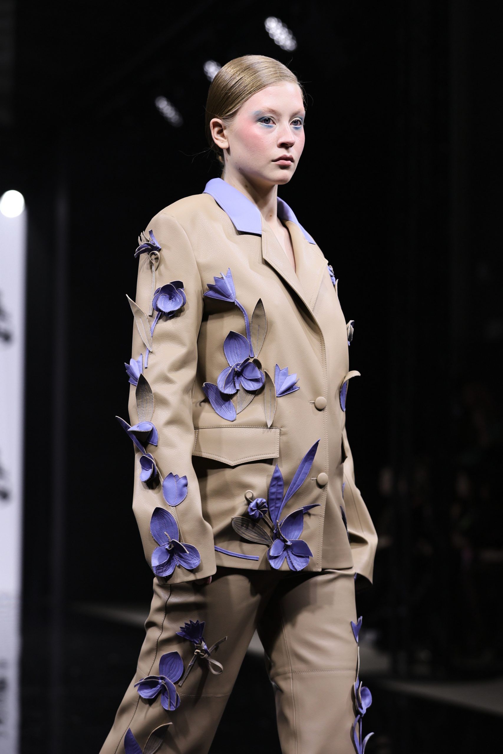 Дизайнер широко использовала принцип многослойности: в коллекции представлены образы, в которых разные материалы соединены в гармоничную комбинацию, при этом создавая эффект контраста. Одним из наиболее ярких приемов стало сочетание легких, прозрачных или тонких тканей в основе образа с мехом в качестве яркого акцента. Такой союз придает образам динамику и глубину, делая их более выразительными и интересными.