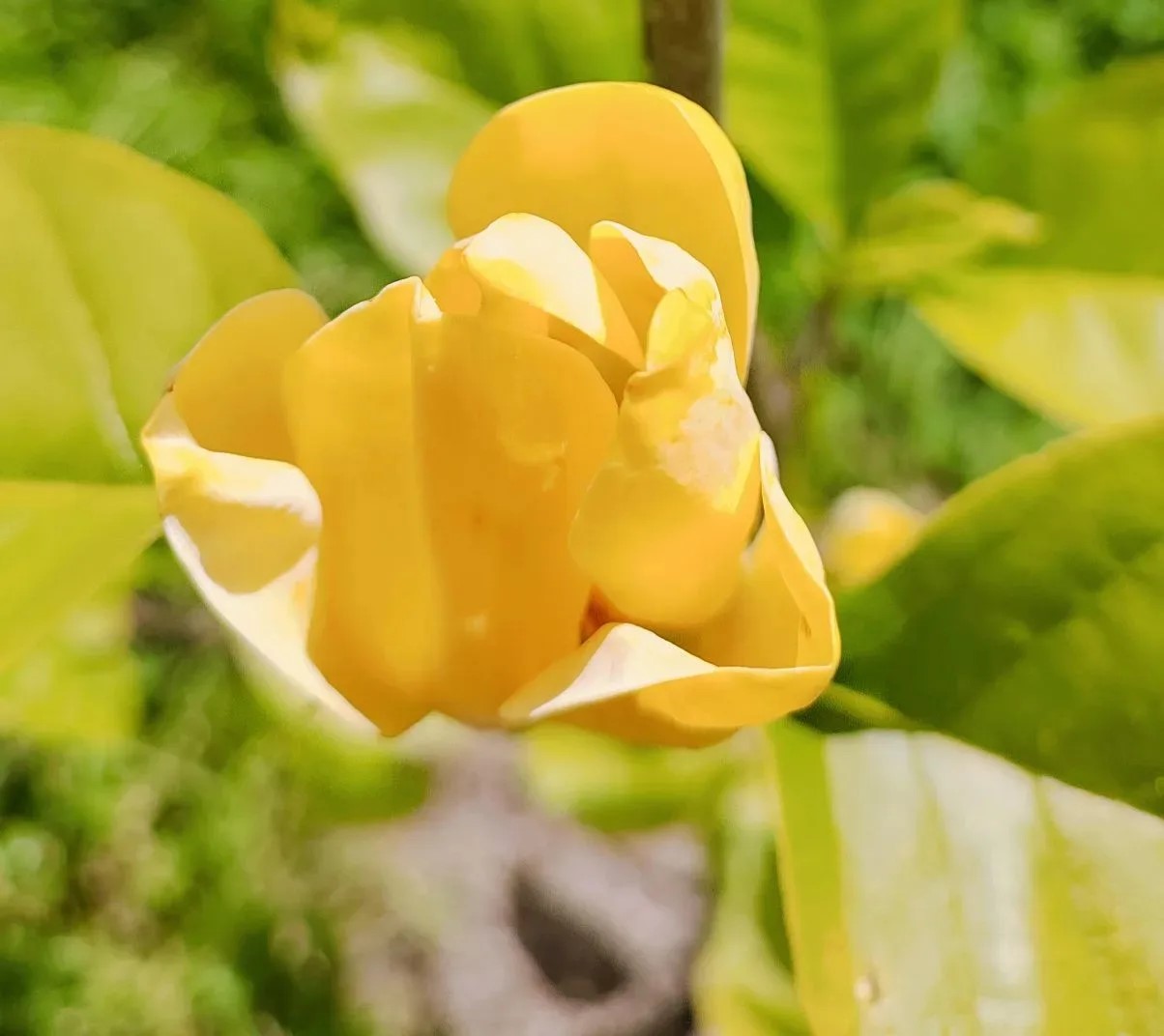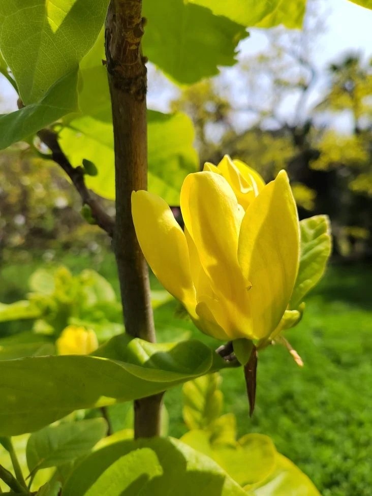Появление цветков стало ожидаемым событием — растения ждали несколько лет. Магнолия отличается насыщенным жёлтым оттенком лепестков и характерным ароматом, схожим с запахом магнолии Суланжа.