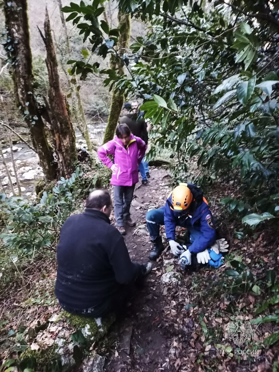 Спасатели обнаружили туристов в труднодоступной горной местности, примерно в 200 метрах от точки слияния рек Агуры и Агурчик. На месте происшествия пострадавшему была оказана первая медицинская помощь, в частности, иммобилизован голеностопный сустав с помощью наложения специальной шины.