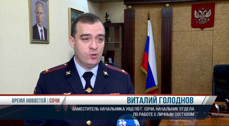 «Уважаемые коллеги, я с радостью и с удовольствием поздравляю с профессиональным праздником, с профессиональным днём сотрудников ОВД Российской Федерации. Хочется пожелать вам добра, счастья, благополучия, чтобы семьи ваши почаще вас видели дома, чтобы работа была безопасна», — поздравил заместитель начальника УВД по городу Сочи, начальник отдела по работе с личным составом Виталий Голоднов.