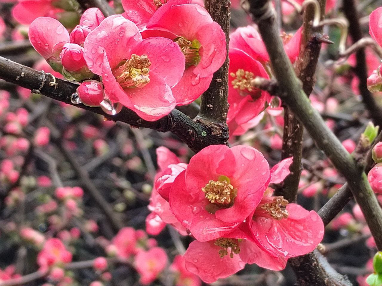 В сочинском дендропарке «Южные Культуры» настоящий переполох — там распустились сразу четыре вида хеномелеса (японской айвы) и целая россыпь его сортов. Кустарники полыхают кораллово-алыми и нежно-лососевыми огоньками.