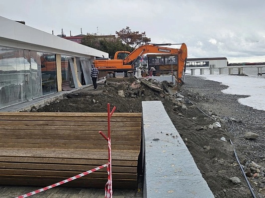 В Адлерском районе Сочи начались восстановительные работы на морской набережной, которая пострадала из-за сезонных штормов. Повреждения были зафиксированы в феврале и апреле 2026 года в районе муниципальных пляжей «Огонёк-2» и «Лазурь».
