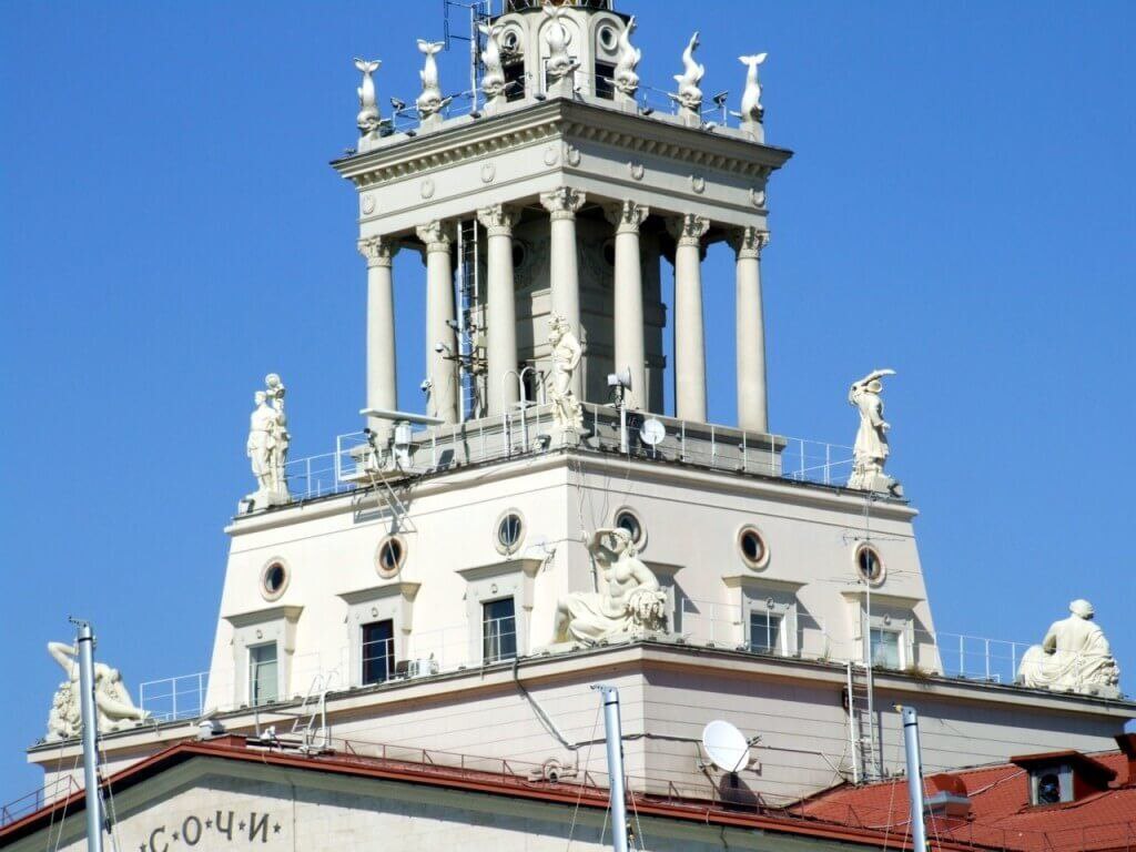 Здание вокзала построено в стиле сталинский ампир. Это один из самых узнаваемых символов города-курорта. Реставрация трехъярусной башни с 36-метровым шпилем проведена впервые. Также отреставрированы открытые смотровые площадки и скульптурные группы.