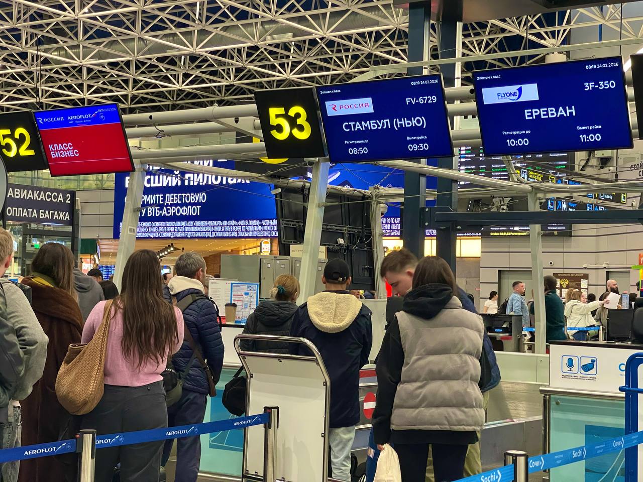 Пресс-служба аэропорта Сочи отмечает, что пассажирам рекомендуется внимательно следить за информированием о статусе вашего рейса от авиаперевозчиков. Авиакомпании сообщают обо всех изменениях по контактам, указанным в бронировании. Также нужно слушать аудиообъявления в терминале или подписаться на оповещения по своему рейсу в телеграм-боте @AerodinamikaBot.