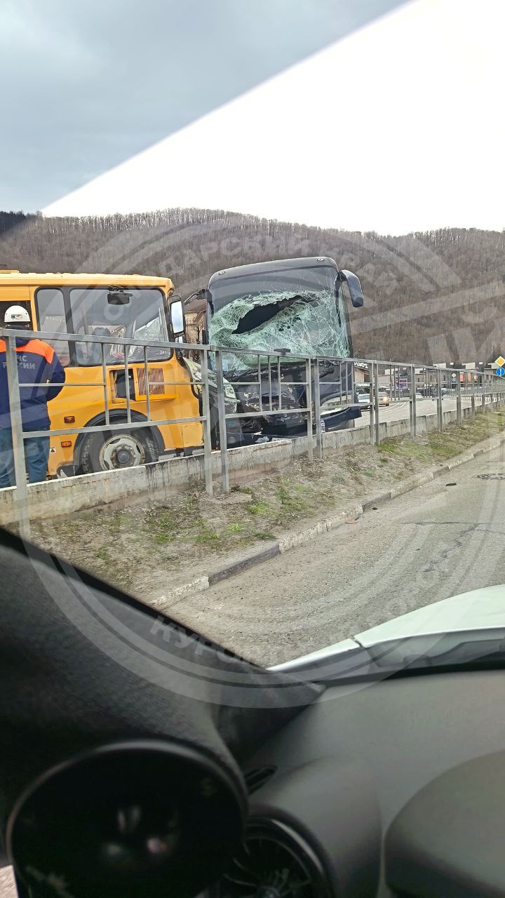Утром в горном Сочи произошло серьезное дорожно-транспортное происшествие с участием двух автобусов. Авария случилась на улице Эстонской в поселке Эсто-Садок. По предварительным данным из соцсетей, школьный автобус и экскурсионный транспорт столкнулись лоб в лоб. Уточнение: по информации МЦУ Сочи, произошло столкновение двух экскурсионных автобусов без пассажиров.