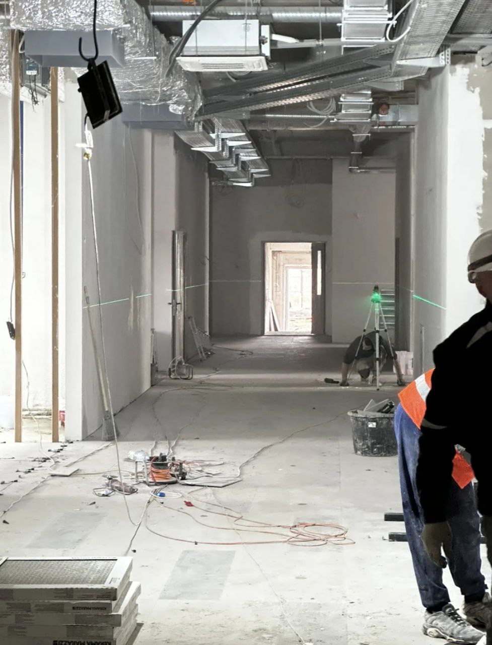 На объекте продолжаются работы по прокладке внутренних инженерных сетей, ведется внутренняя отделка помещений и благоустройство прилегающей территории. В строительстве задействованы 233 специалиста и три единицы техники. По состоянию на текущий момент физическая готовность школы оценивается в 91 процент.