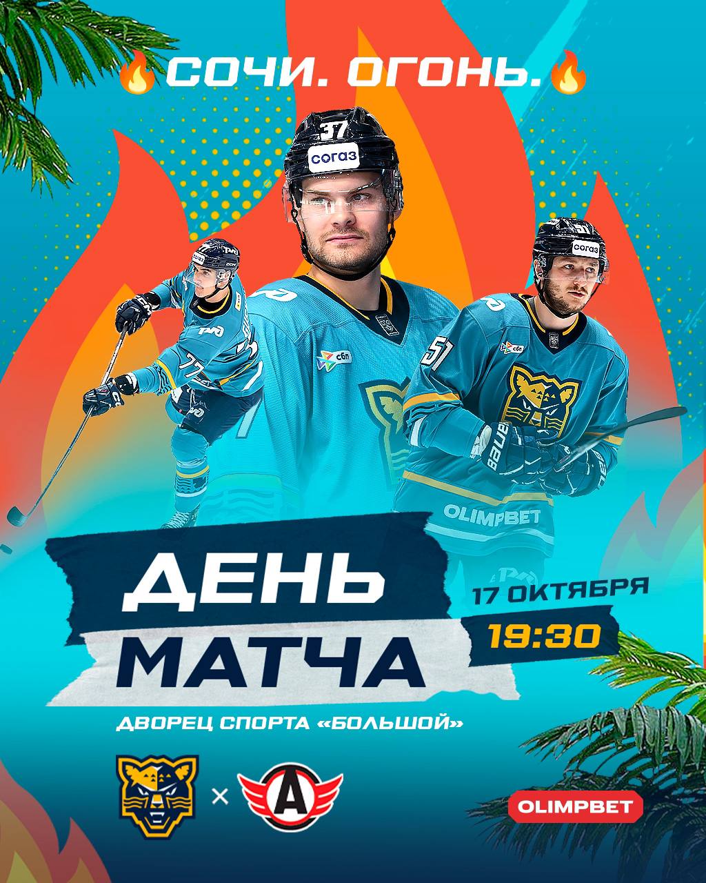 17 октября октября в Сочи состоится матч регулярного чемпионата КХЛ. На льду Дворца спорта «Большой» встретятся ХК «Сочи» и «Автомобилист» из Екатеринбурга. Начало игры в 19:30 по московскому времени.