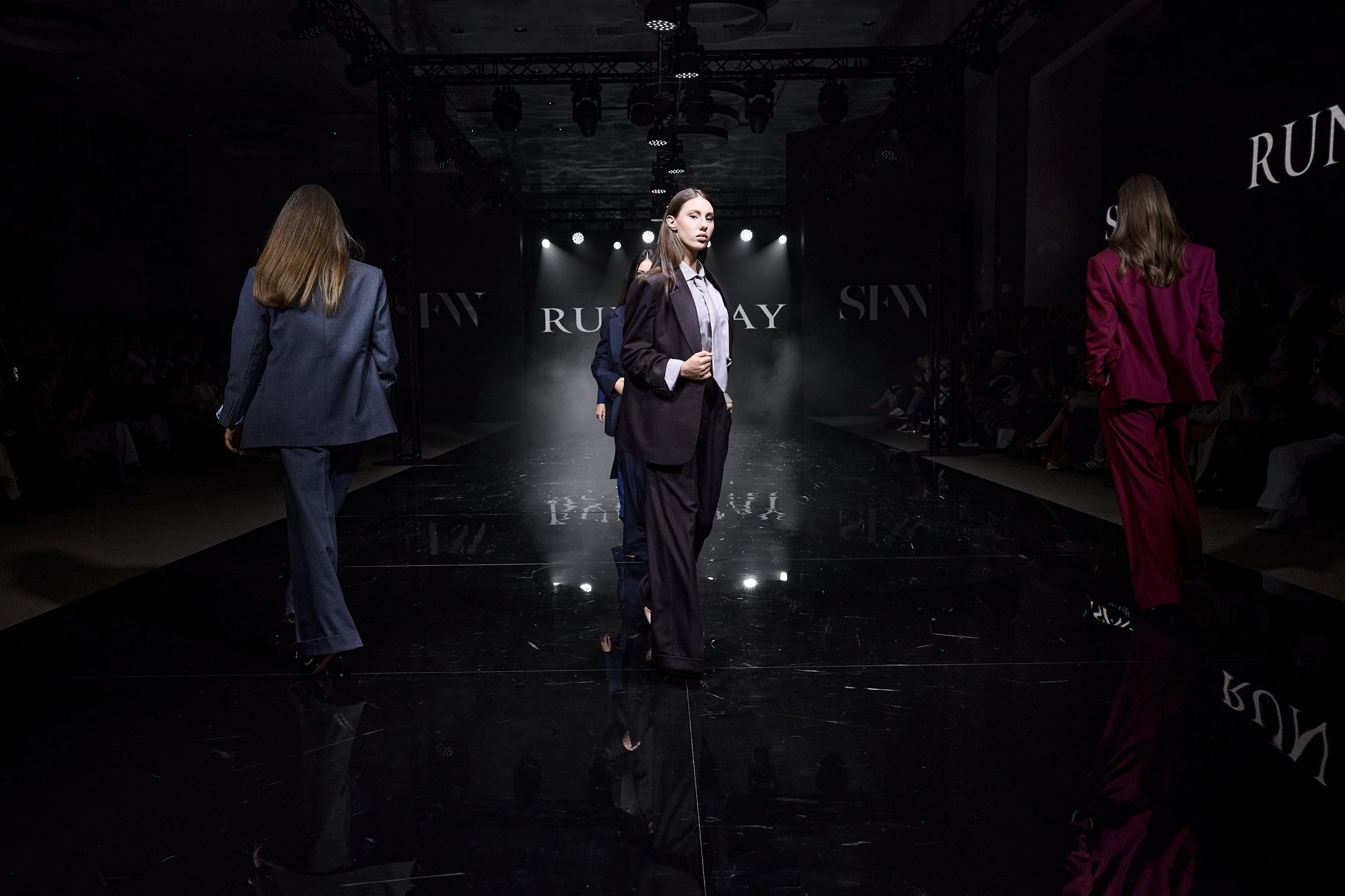 Бренд из Владикавказа RUNWAY был основан в 2023 году и уже успел заявить о себе как о новом взгляде на повседневный стиль. Основатели бренда обозначили свою миссию как создание «повседневного кутюра» и поставили перед собой задачу объединить в одежде высокое качество, элегантность и практичность. В дизайне преобладают такие элементы, как лаконичные силуэты, строгие линии и элегантные детали, которые в сочетании с качественными тканями создают актуальную и универсальную эстетику. Основа коллекции – брючные костюмы, которые уже давно не входят в категорию исключительно офисной одежды – сегодня это главный элемент современного гардероба с большим выбором фасонов, цветов и вариантов стилизации. Монохромная беспроигрышная классика: серый, черный, синий, модный винный – дизайнер бренда понимает, что такой костюм это база: комплект точно не будет забытым в дальнем углу гардероба. Более того, за пределами рабочих кабинетов костюм при особой с помощью обуви и аксессуаров легко превращается в вечерний образ.