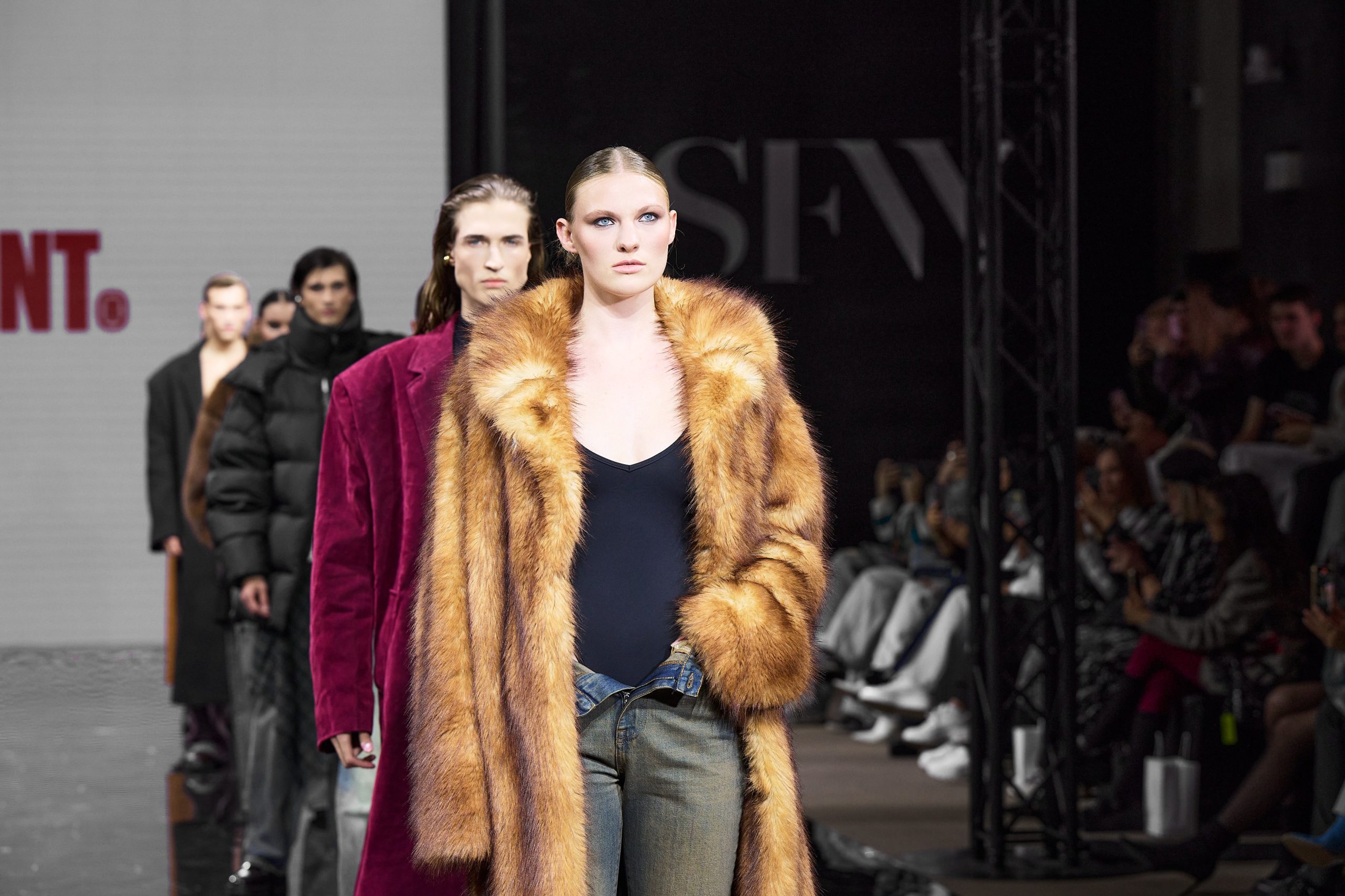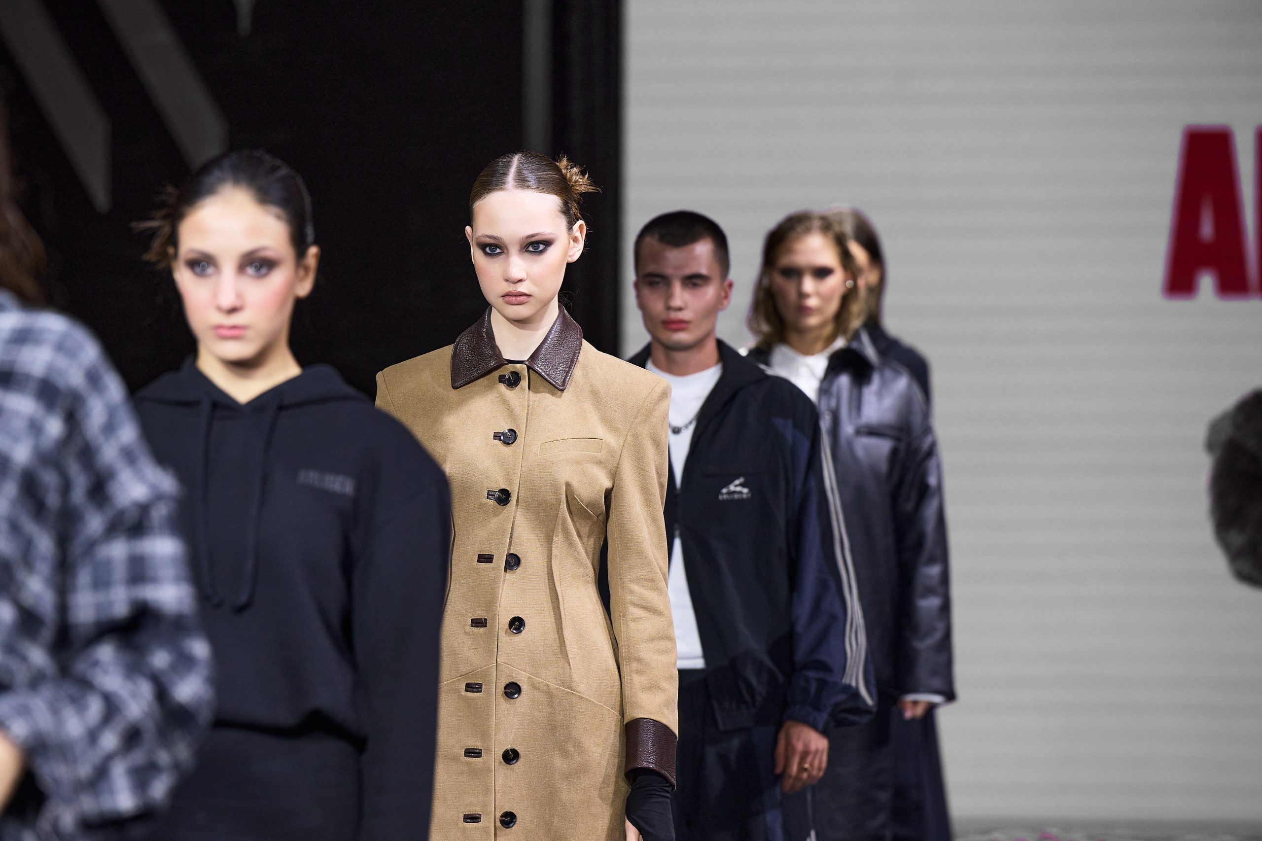 Бренд показал набор statement items — готовые идеи, которые уже существуют ввиде трендов. Шубы из искусственного меха, плащи и юбки из экокожи, «спортивки» из 90х, джинсы с винтажным эффектом.