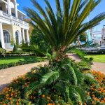 На курорте хорошо приживаются виола, тюльпаны, цикламены, нарциссы, декоративная капуста и другие виды. Композиции формируют с учетом условий среды. Тенелюбивые цикламены высаживают на участках с минимальным прямым солнечным светом. Сорта тюльпанов подбирают по срокам цветения и устойчивости к погодным условиям, чтобы сохранить декоративный эффект в запланированный период.