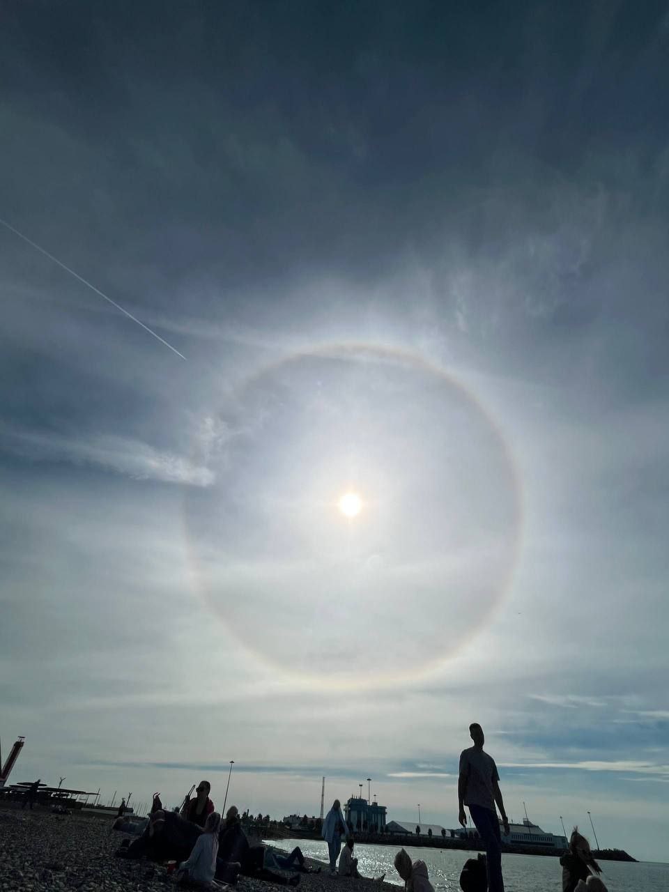 Сегодня днём, 22 октября, сочинцы и гости курорта стали свидетелями удивительного атмосферного явления— вокруг солнца засияло яркое гало. Огромное светящееся кольцо, переливающееся всеми цветами радуги, мгновенно привлекло всеобщее внимание.