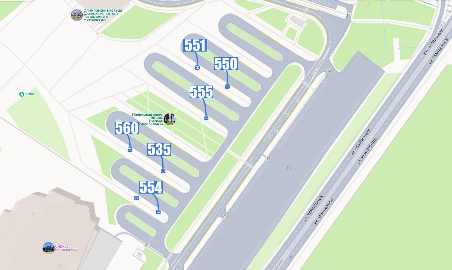 Маршрут №554 также начнет движение от «ЖД вокзала Олимпийский парк», далее проследует по улице Чемпионов, через кольцо налево на Олимпийский проспект и далее по действующей схеме.