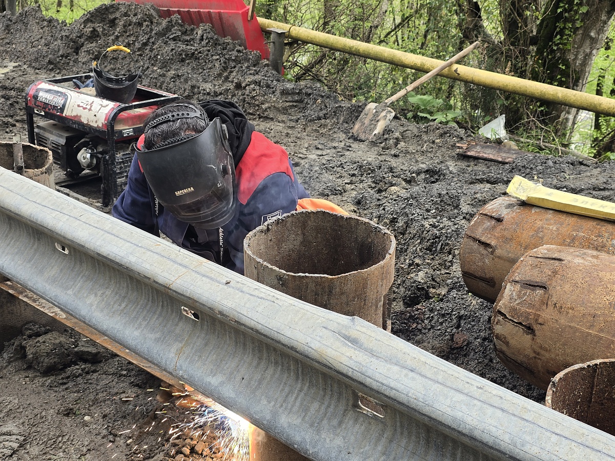 Протяжённость аварийного участка составляет 200 метров. Сейчас проводятся буровые работы по укреплению склона. Специалисты готовят рабочую площадку под буровую установку в месте обвала грунта. Завершить все работы планируется до декабря 2026 года.