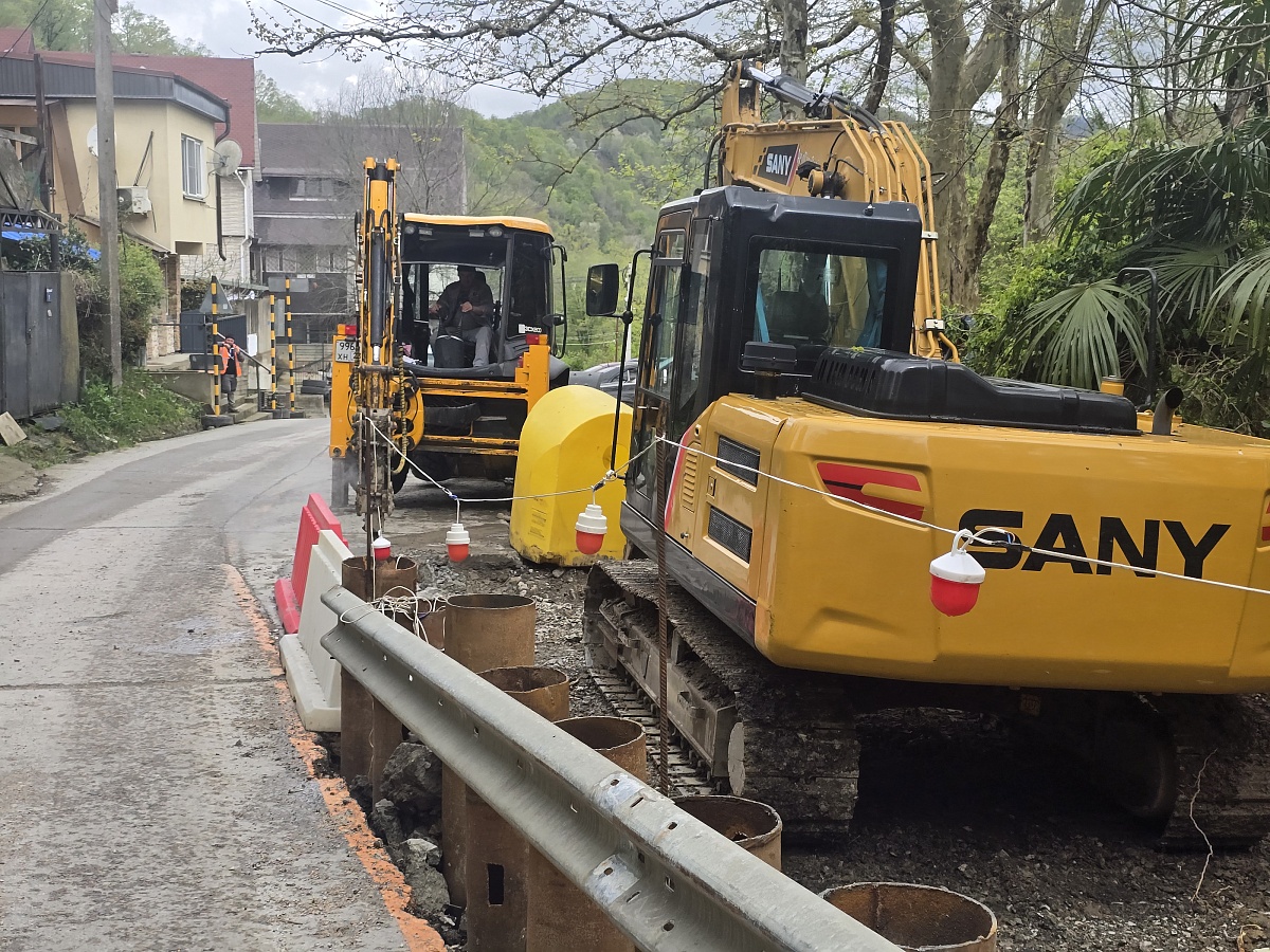Ранее аналогичные работы начались на улице Изобильной в Лазаревском районе. На аварийном участке сделали планировку площадки для укладки дорожных плит, необходимых для заезда буровой установки и спецтехники. Подрядчик выполняет восстановление, включающее устройство 36 буронабивных свай и строительство новой подпорной стены.