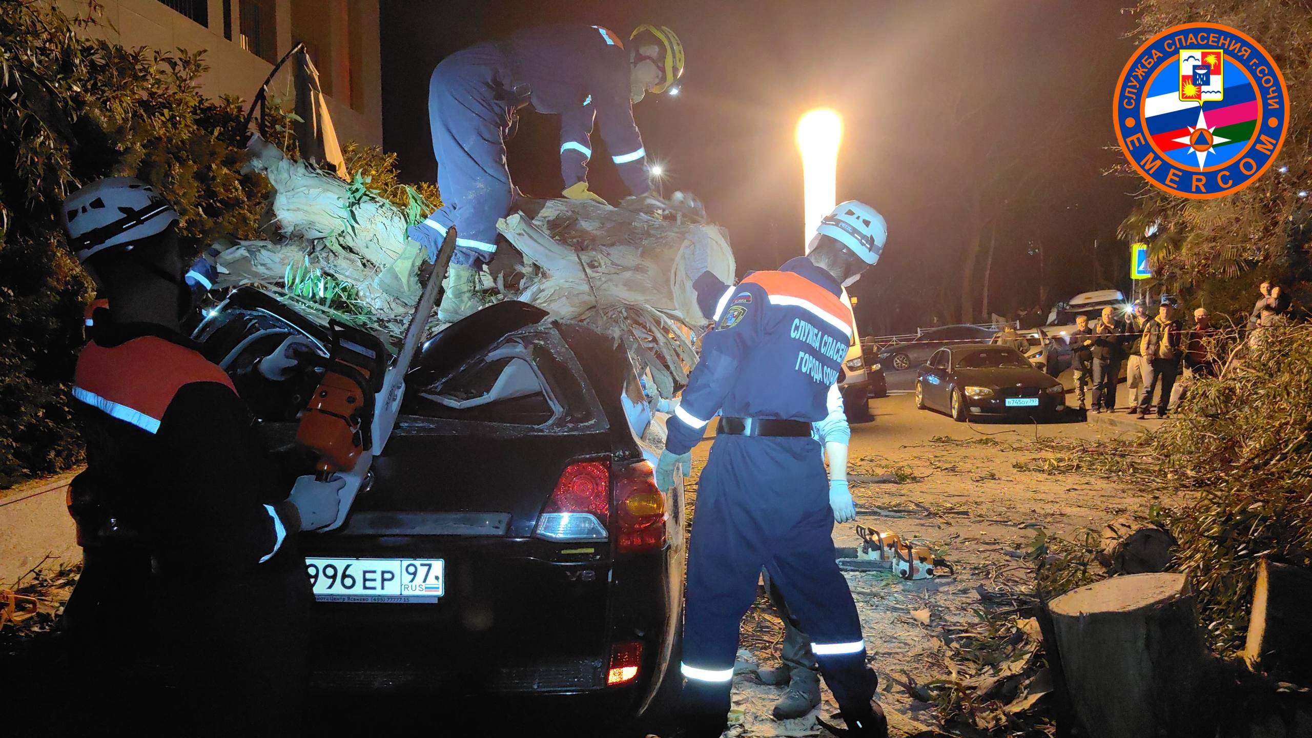 На место оперативно прибыли спасатели МКУ «Служба спасения города Сочи». Они установили осветительную башню и с помощью бензопилы разобрали завал. Машины были освобождены, а проезжая часть полностью открыта для транспорта.