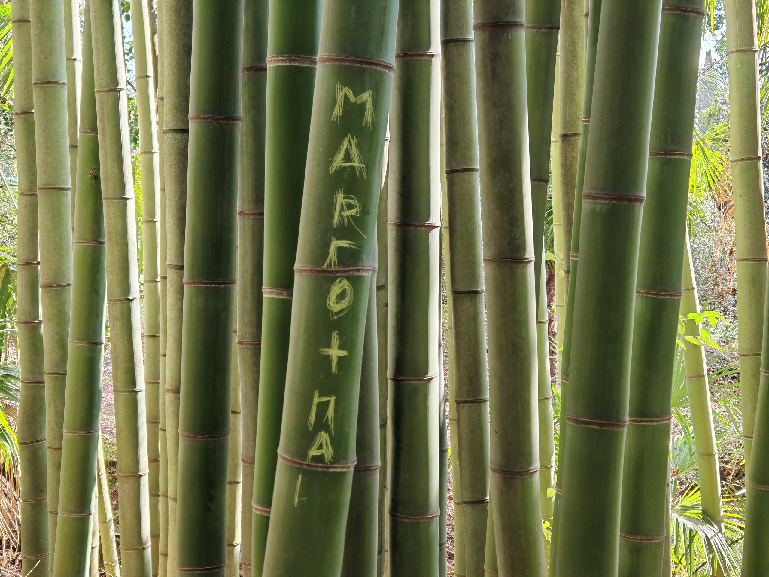Вандалы устроили нападение на сотрудников дендрария в Сочи. На одном из стеблей бамбука появилась надпись «Здесь был «Па…», прерванная смотрителями парка.