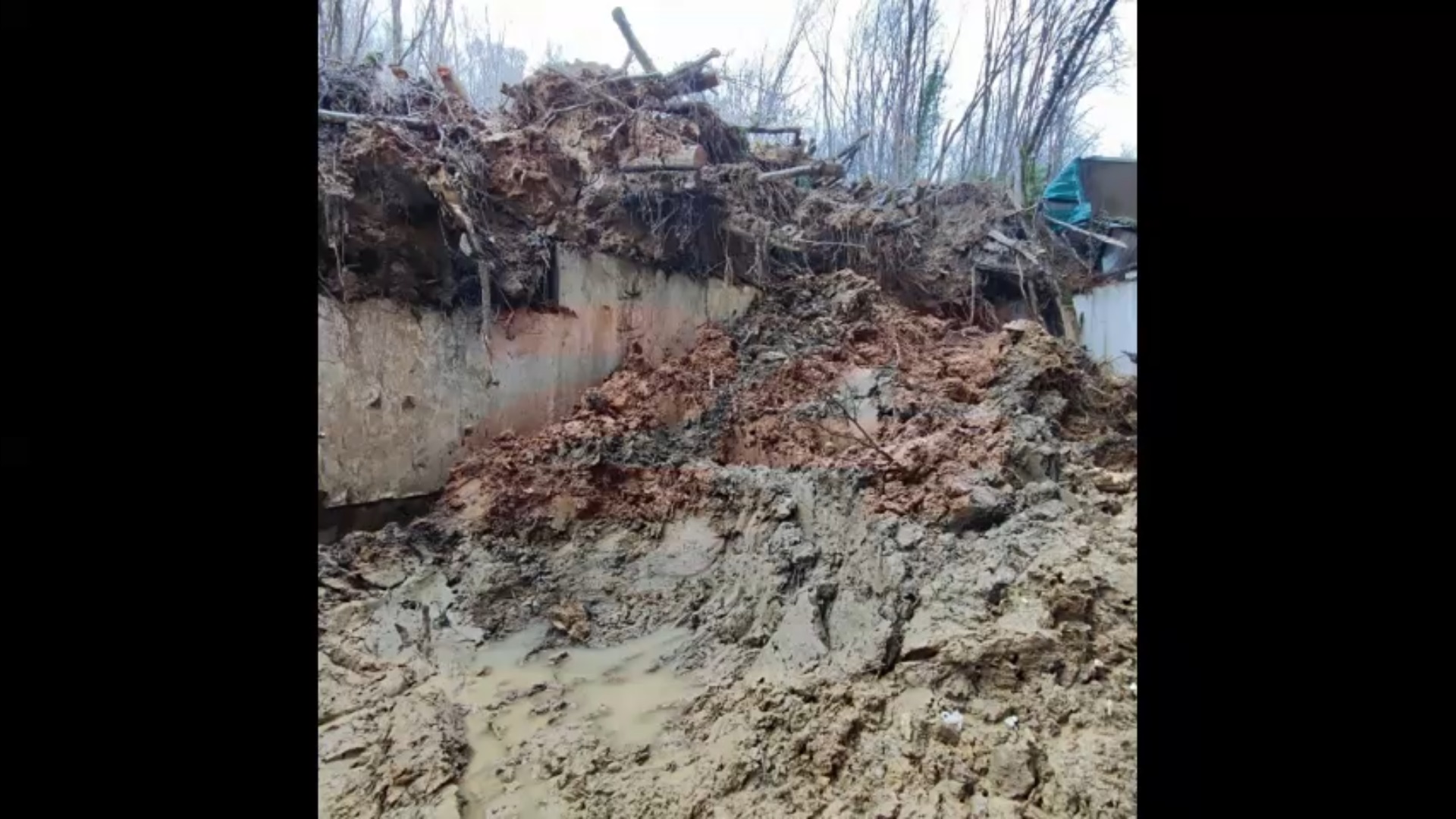 Жильцы дома также сообщают о постоянном притоке грунтовых вод. По их словам, территория вокруг строения затоплена, вода попала в одну из квартир на первом этаже. Люди опасаются, что ожидаемые осадки могут ускорить сход земли и усугубить ситуацию.