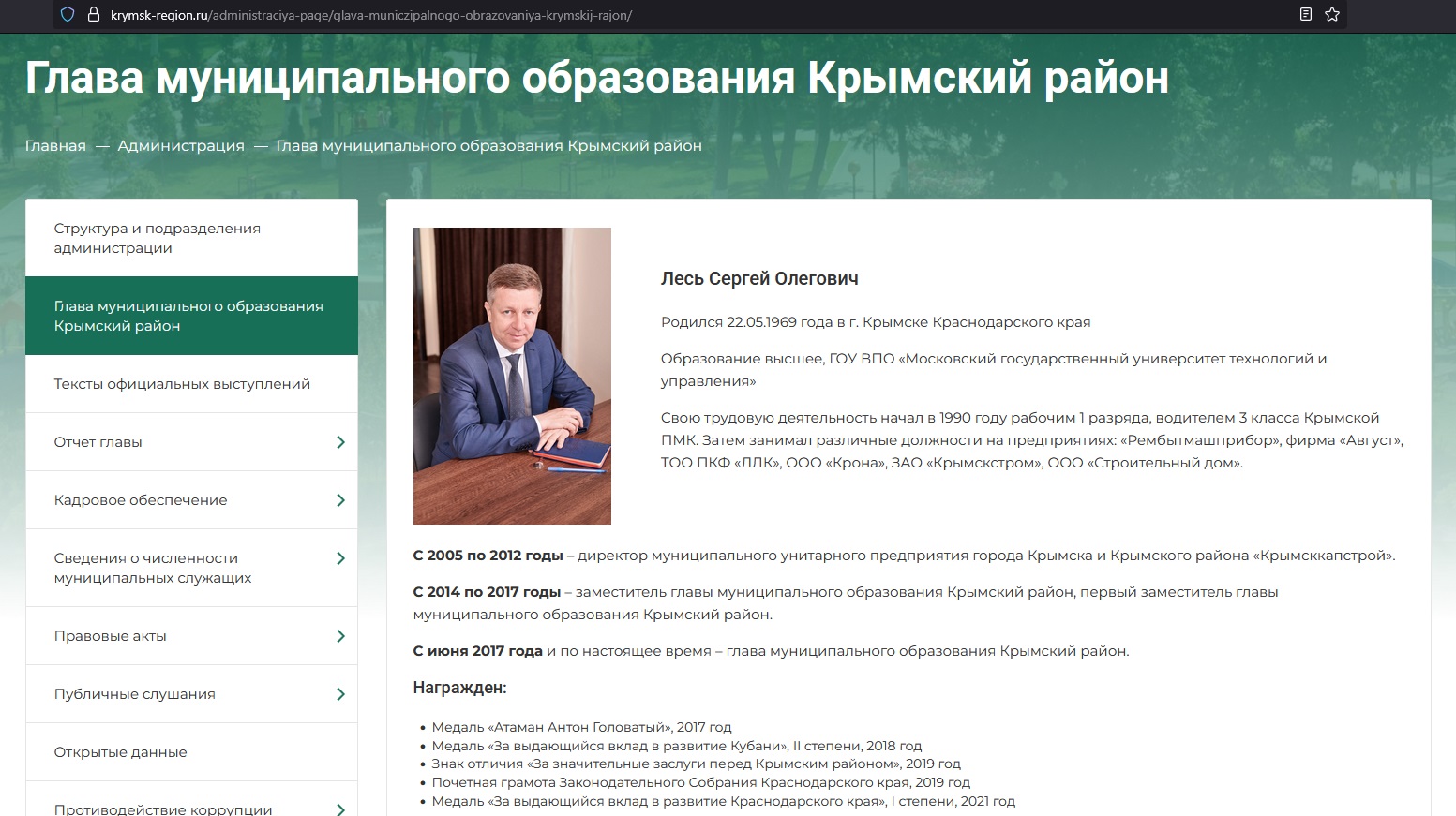 Сергей Лесь, задержанный при попытке бегства с крупной суммой наличных и золотыми слитками, пытается добиться освобождения из-под стражи, пишет «Живая Кубань». Он подал апелляцию в Краснодарский краевой суд, требуя изменить меру пресечения. При этом на официальном сайте администрации района Сергей Лесь до сих пор значится действующим главой Крымского района Краснодарского края.